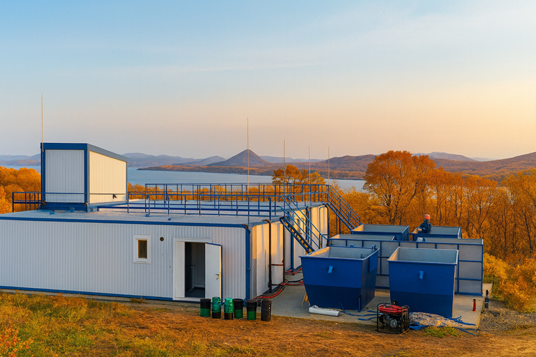 Финальный резервуар для аккумуляции очищенной воды, обеспечивающий контроль ее качества и регулируемый сброс в водный объект. Позволяет проводить окончательный отбор проб и гарантировать соответствие стоков установленным нормативам перед выпуском в окружающую среду.